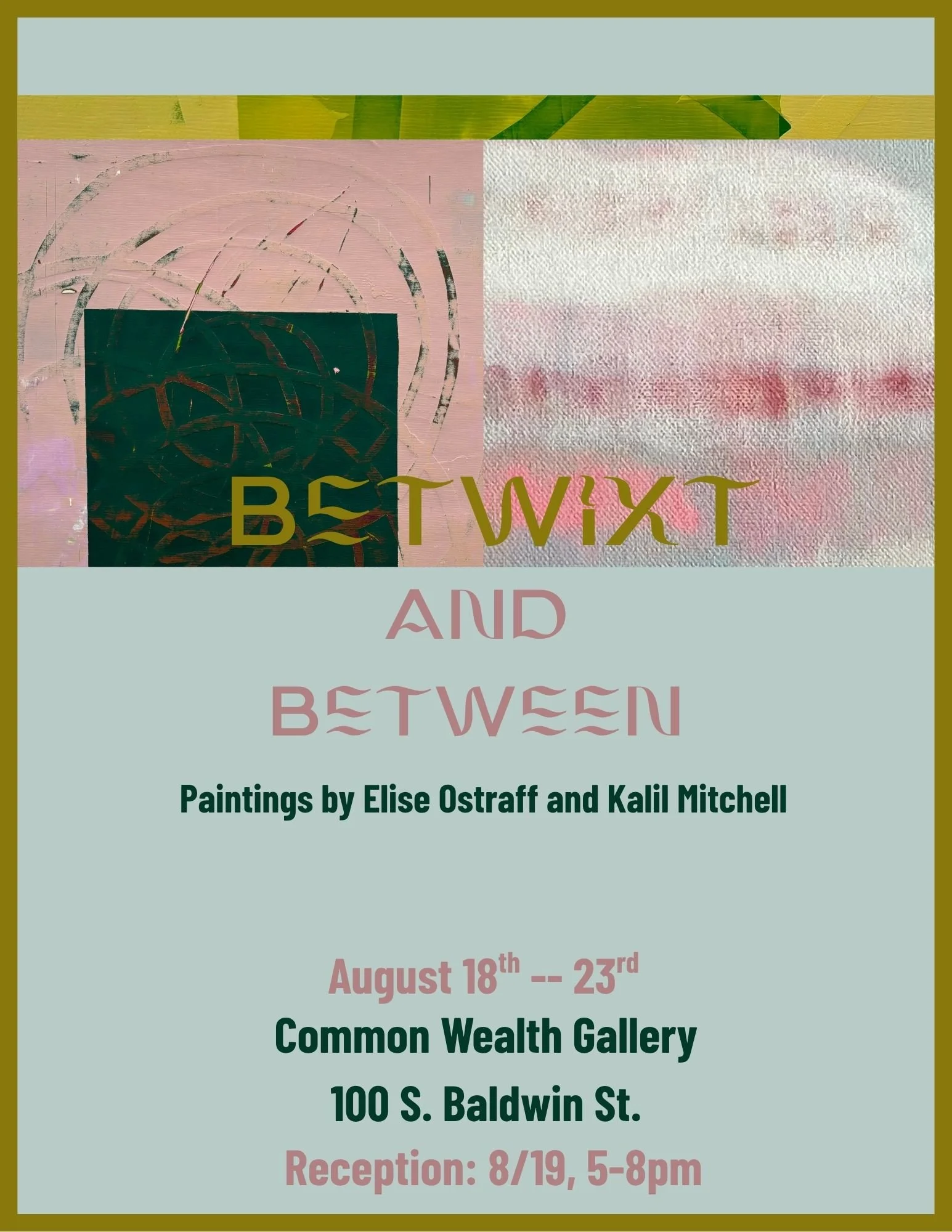 Betwixt and Between: Paintings by Kalil Mitchell and Elise Boucher-Ostraff. Common Wealth Gallery, Madison, WI. 2025.